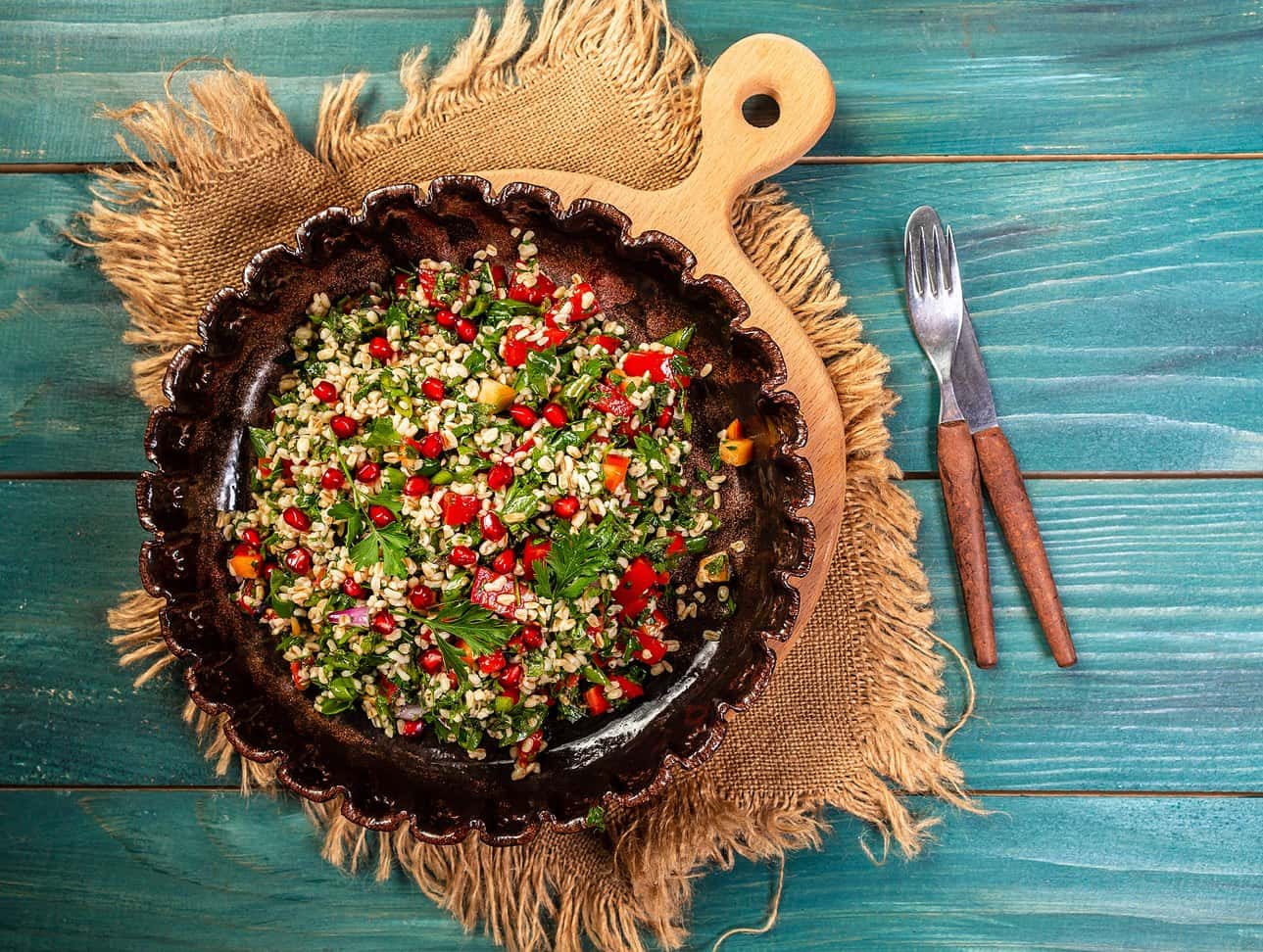 You may wish to cook your own bulgur, brown rice or barley. For breakfast, choose rolled oats or steel-cut oats rather than quick cold cereals, which are mostly refined grains. Overnight soaking can speed cooking time in the morning. When you buy bread, look for a loaf that is dense and chewy. Its primary ingredient should be whole grain (usually wheat or rye). Select brown rice rather than white as a side. Investigate options like tabouli (in the photo) for lunch or dinner.