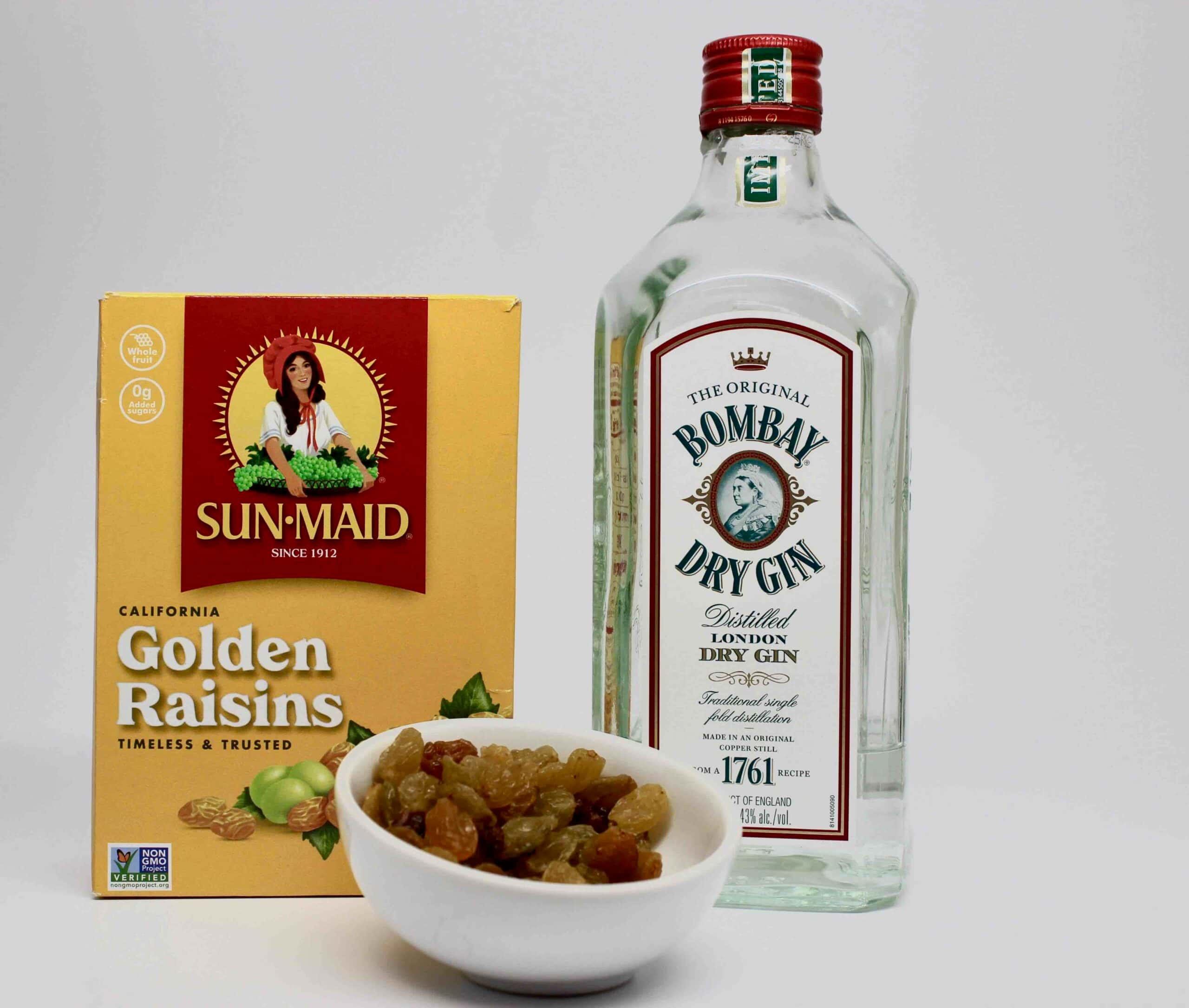 The original recipe was for gin and golden raisins. We suspect that the juniper in “regular” gin might be contributing something special.