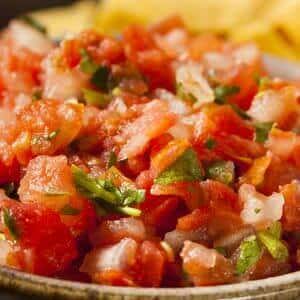 A. Pico de gallo is an uncooked salsa made with tomatoes, onions, chili peppers and (often) cilantro. We heard years ago from a psoriasis sufferer that eating salsa brought him relief. We did not think to ask him then if his salsa contained cilantro.